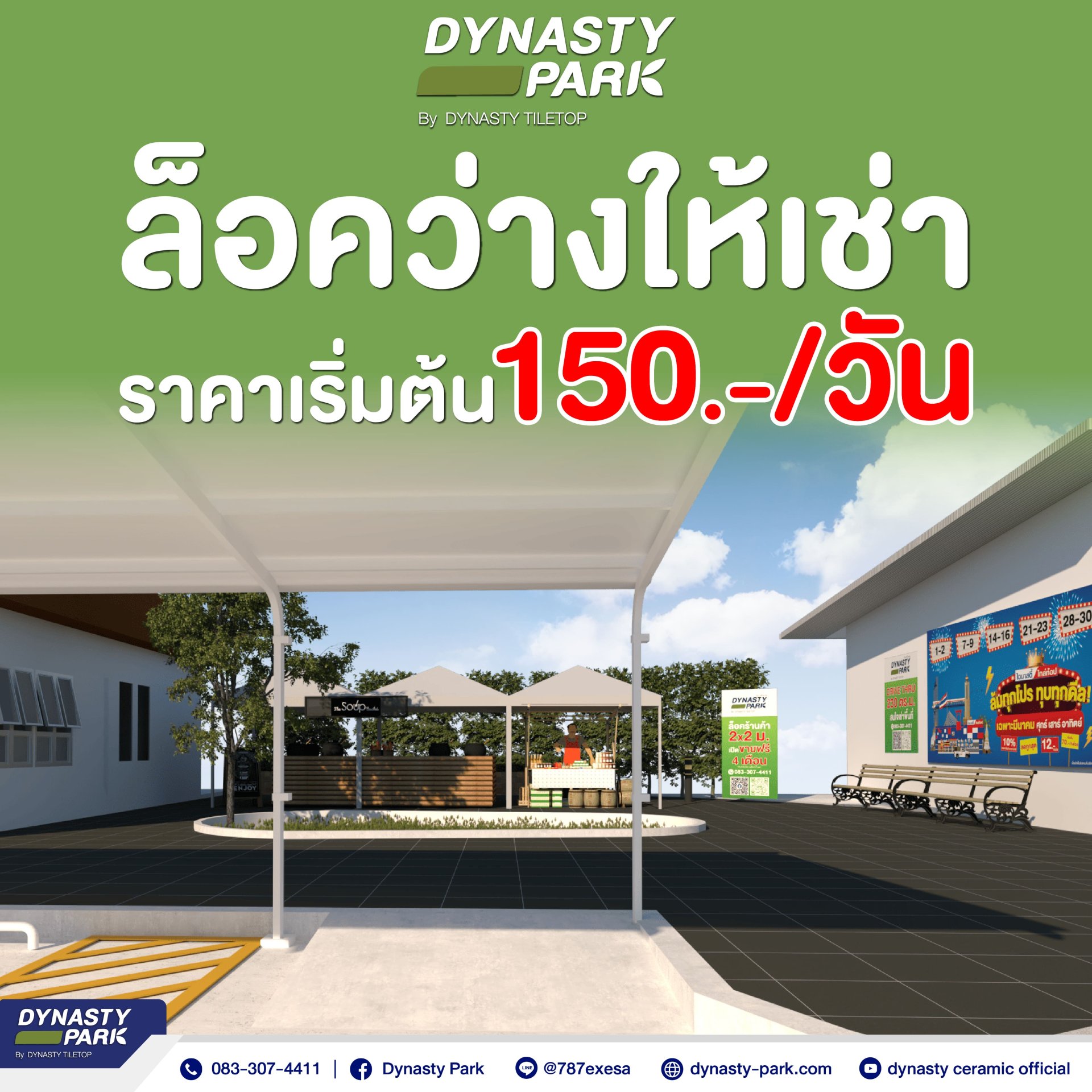 เปิดจองเช่าพื้นที่ Dynasty Park! เริ่มต้นเพียง 150 บาท/วัน ทำเลทองในนครปฐม เดินทางสะดวก เหมาะสำหรับธุรกิจทุกประเภท ไม่ว่าจะเป็นร้านอาหาร ร้านค้า หรือบริการต่าง ๆ